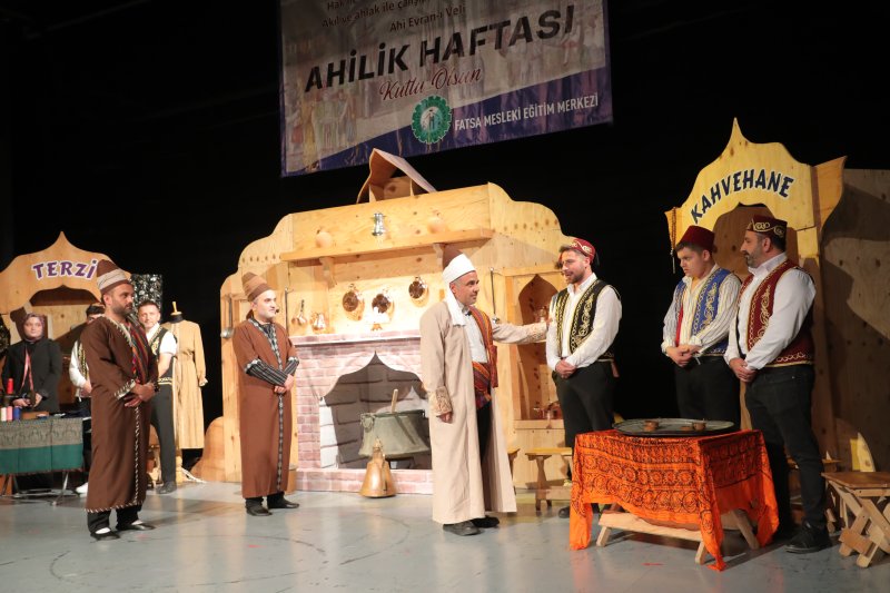 Program saygı duruşu ve İstiklal Marşı’nın okunması ile başladı. Daha sonrası mehteran takımı gösterisini sundu. Ahilik Haftası programının açılış konuşmasını yapan Fatsa Mesleki Eğitim Merkezi Müdürü Abdullah Akkaya, “Ahilik, Anadolu Selçuklu Devleti’nin son dönemi ile Osmanlı Devleti’nin ilk dönemlerinde Anadolu’da yaşayan halkın sanat, ticaret ve ekonomi gibi çeşitli meslek dallarında yetişmelerini sağlayan ve onları ahlaki yönden geliştiren, dayanışma duygusunu düzenleyen bir örgütlenmedir. Günümüzde de ahlaki ilkelerin ne ölçüde önemli olduğunu esnaf kültüründe hep birlikte görmekteyiz. Ahilik teşkilatı; iyi ahlakın, doğruluğun, kardeşliğin ve yardımseverliğin bir arada olduğu sosyo-ekonomik bir düzen sağlamış, sanat ve meslek yönüyle toplumun ekonomik yapısını hazırlarken, ahlaki yönüyle de devlet yapısının temel niteliklerini belirlemiştir.” dedi.