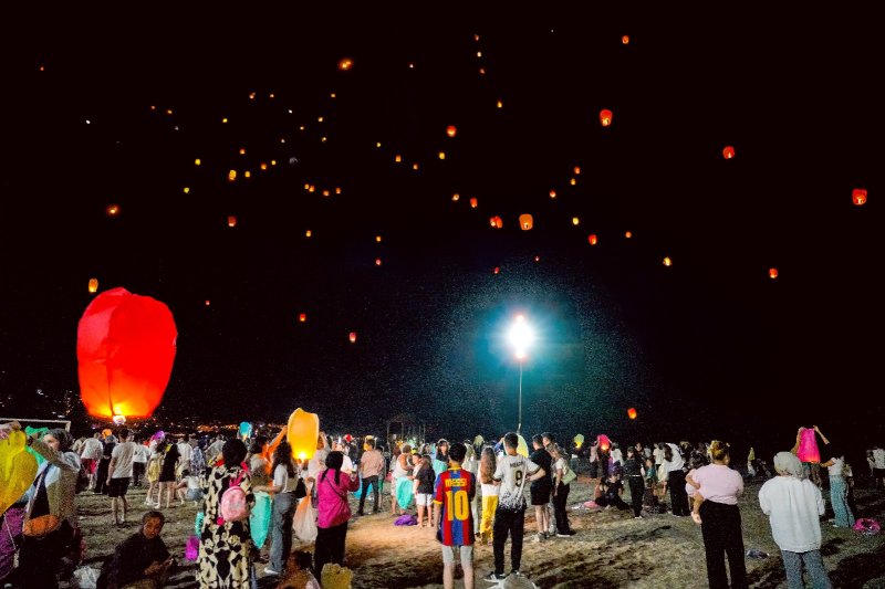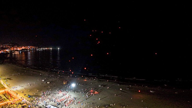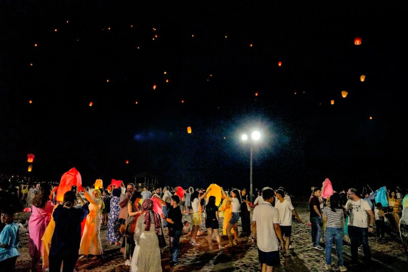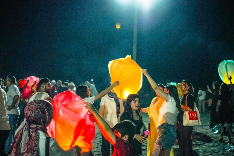 Ellerindeki fenerlere dileklerini yükleyen vatandaşlar, geleceğe dair umutlarını gökyüzüne bıraktı. Aileler çocuklarıyla birlikte bu anlamlı anlara ortak olurken, plajın dört bir yanından yükselen ışıklar eşliğinde ortaya görsel bir şölen çıktı.