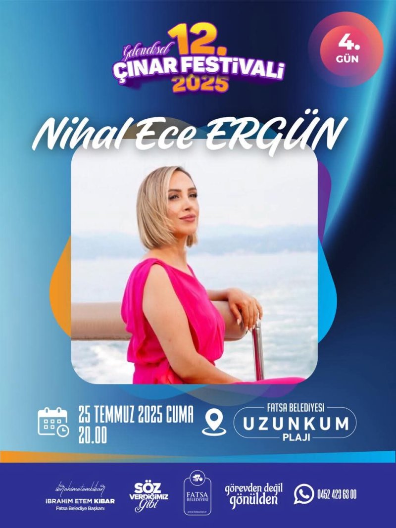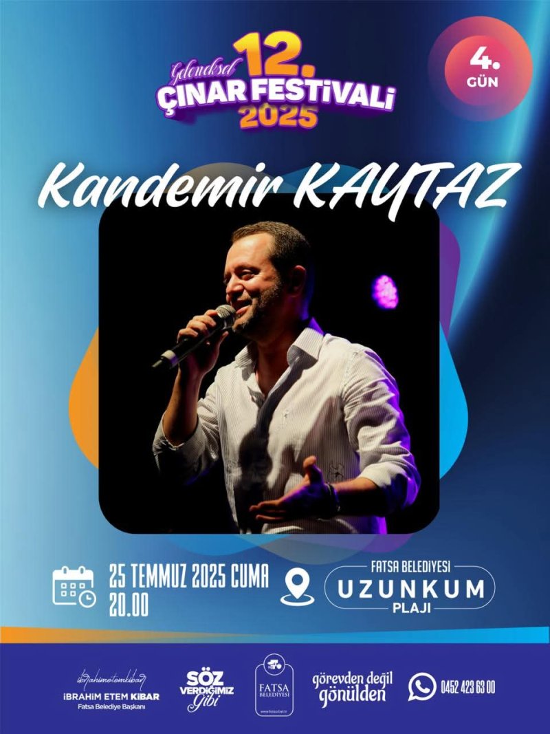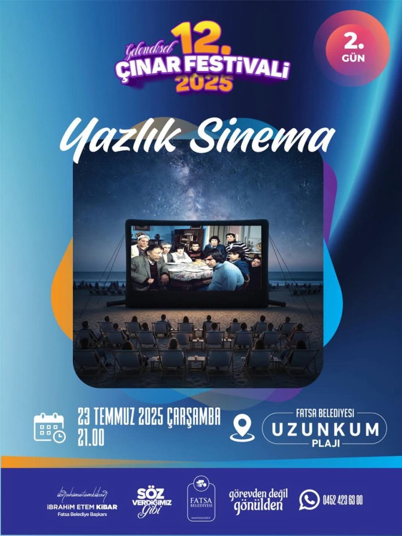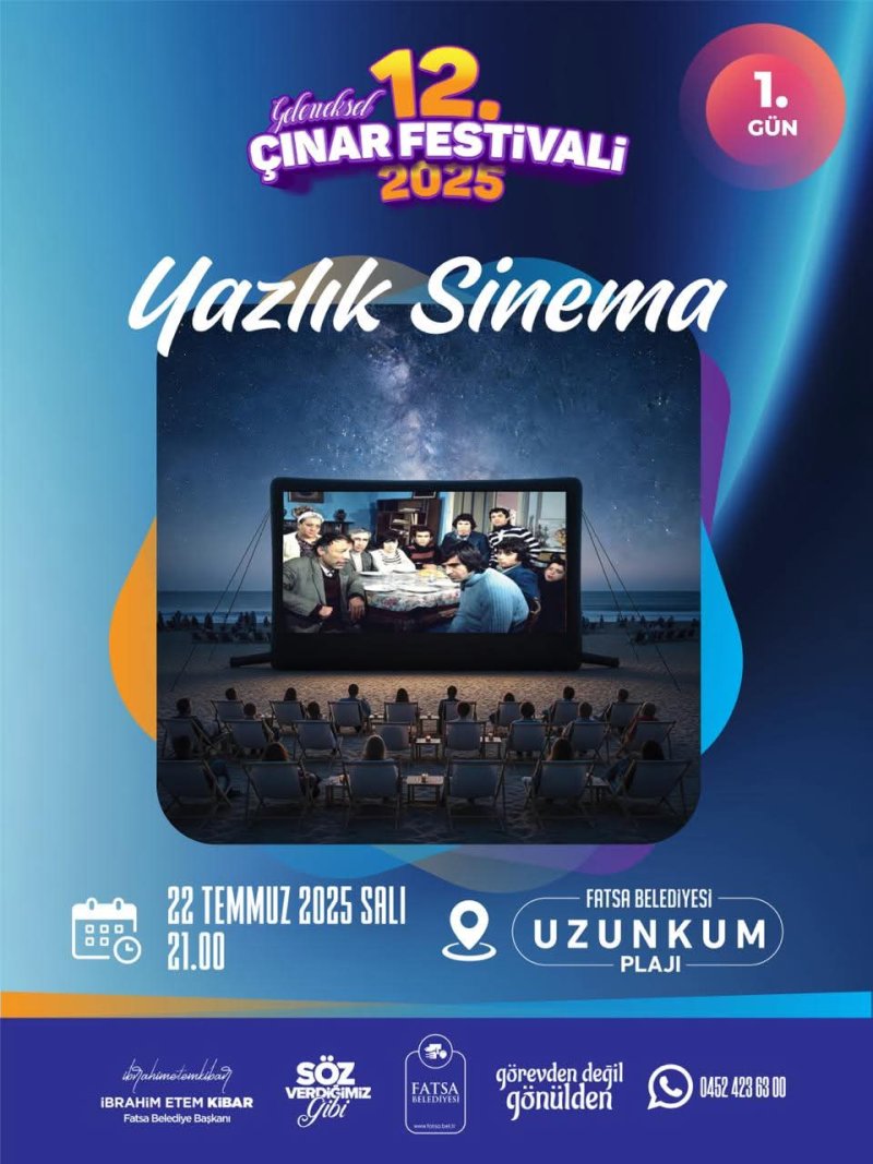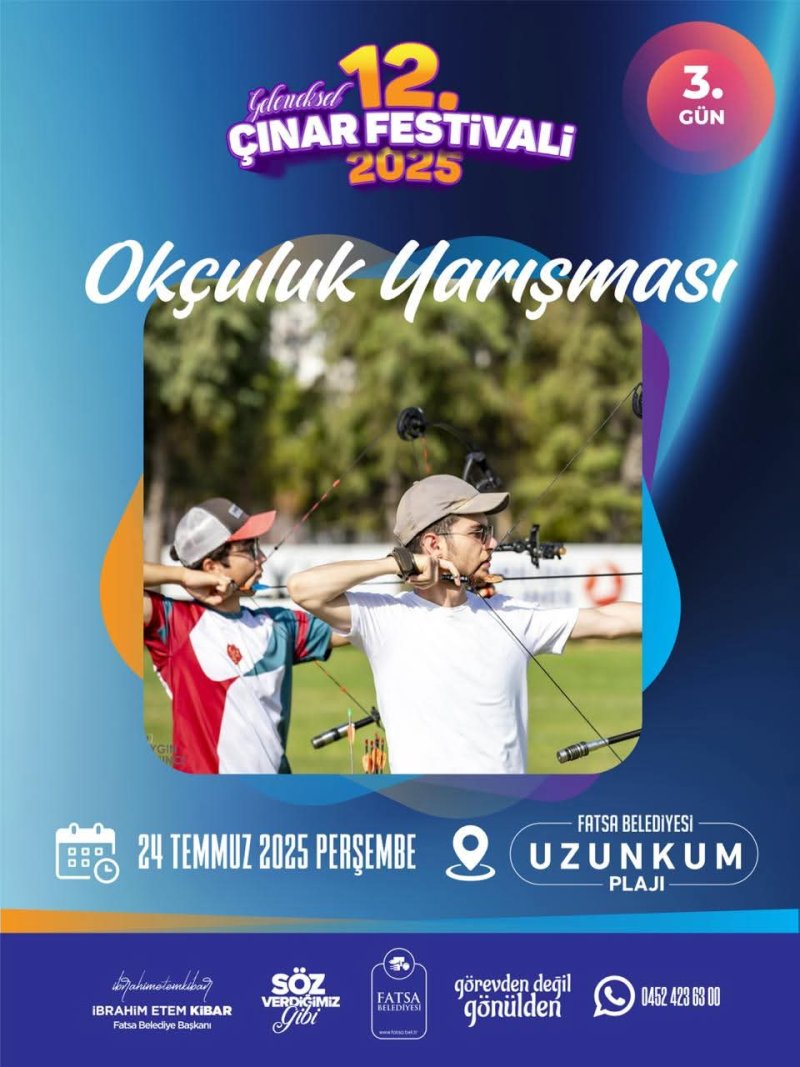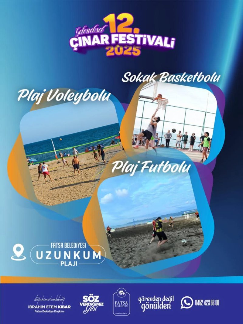 Fatsa Belediyesi tarafından bu yıl 12’ncisi düzenlenen geleneksel Çınar Festivali, 22 Temmuz 2025 tarihinde başlıyor! Her yaştan vatandaşın keyifle katılabileceği etkinliklerle dolu festival, 26 Temmuz’a kadar Fatsa’nın farklı noktalarında coşku dolu anlara sahne olacak.