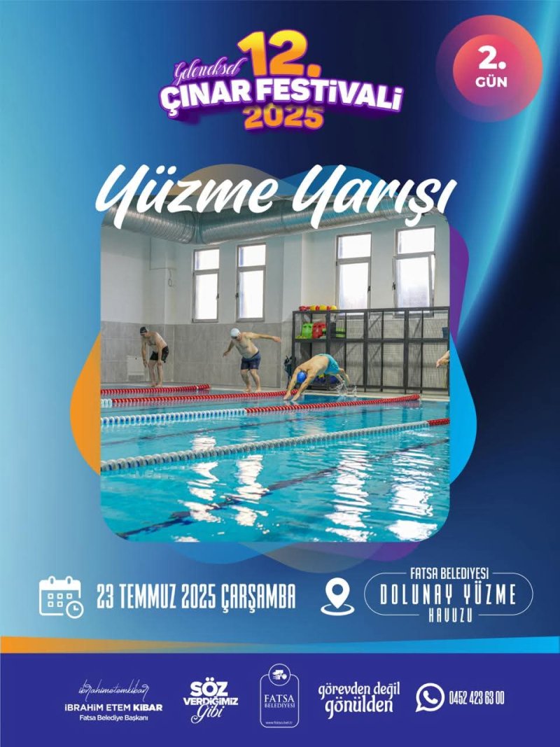 22-26 Temmuz tarihleri arasında Fatsa’da buluşalım, birlikte eğlenelim!Etkinlik yerleri: Dolunay Kapalı Yüzme Havuzu, Fatsa Uzunkum Plajı ve şehir merkezi.