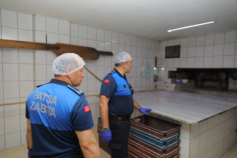 Fatsa Belediyesi Zabıta Müdürlüğü ekipleri, ilçe genelinde hijyen standartlarını ve gıda güvenliğini sağlamak amacıyla düzenledikleri denetimler kapsamında fırınları denetliyor.