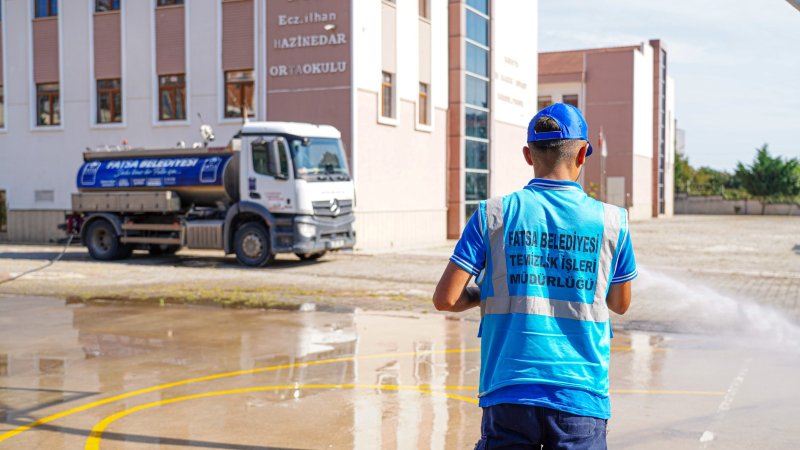 Fatsa Belediye Başkanı İbrahim Etem Kibar, "Geleceğimizin teminatı olan çocuklarımızın sağlıklı ve güvenli bir ortamda eğitim görmeleri bizim en büyük hedefimiz. Bu kapsamda başlattığımız okul temizlik çalışmalarıyla, öğrencilerimizin daha sağlıklı ve hijyenik bir ortamda derslerine başlamalarını sağlıyoruz. Yol süpürme araçlarımız okul bahçelerini ve okul girişlerini temizliyor, yıkama araçlarımız okul girişlerini merdivenlerini yıkayor, Park ve Bahçeler Müdürlüğü ekiplerimiz de yaz aylarında uzayan yabani otların temizliğini yapıyor. Çocuklarımızın rahat ve sağlıklı bir ortamda eğitim almaları için üzerimize düşen görevleri yapmaya devam edeceğiz. Bu anlamda yeni eğitim-öğretim yılının hayırlı olmasını temenni ediyor, tüm öğrencilerimize ve öğretmenlerimize başarılar diliyorum.” dedi.