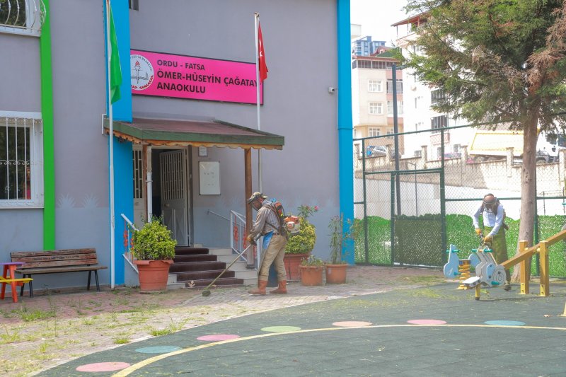 Fatsa Belediyesi, 2024 – 2025 eğitim-öğretim yılına hazırlanan ilçedeki tüm okullarda kapsamlı bir temizlik çalışması gerçekleştirdi. Okullarda görevli ekipler, bahçeleri titizlikle temizliyor.