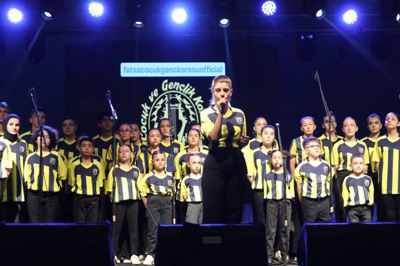 Özel Sevgi Sanat Evi Gençlik ve Çocuk korosu sahneye yine Fatsa Belediyespor formaları ile çıktı ve birbirinden güzel şarkılarla izleyenleri eğlendirdi.
