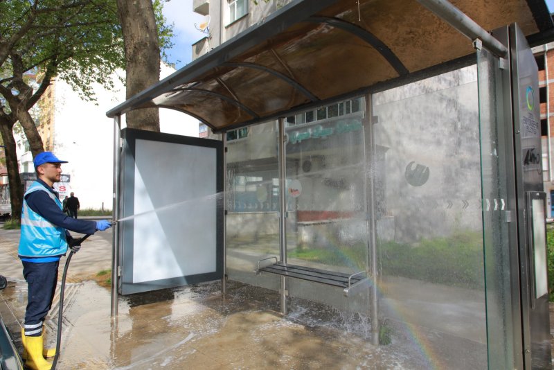 Yol ve kaldırımların mekanik süpürme araçlarıyla temizlenmesinin yanı sıra, belirli alanlarda köpüklü yıkama yapılmaya devam ediliyor. Hem yollar hem de konteynerler deterjanla yıkanarak mikroplara karşı hijyenik hale getiriliyor.