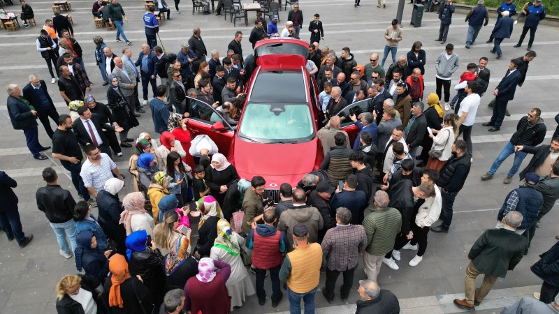 Vatandaşlar TOGG önünde hatıra fotoğrafı çektirebilmek için adeta birbirleriyle yarıştı. Vatandaşlar bir yandan fotoğraf çektirirken bir yandan da aracı uzun süre inceleyerek hakkında bilgi almaya çalıştılar.