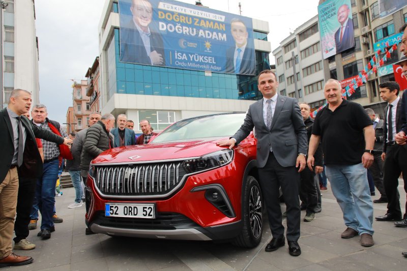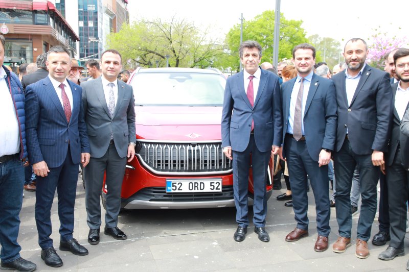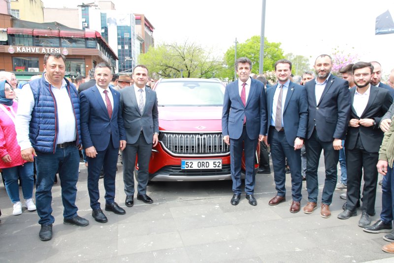 Yerli ve Milli otomobili TOGG’u Fatsa meydanında Kaymakam Avni Kula,Belediye Başkanı İbrahim Etem Kibar, Milletvekili adayı İsa Yüksel, İlçe Başkanı Yasin Sarıçiçek ve vatandaşlar alkışlarla karşıladı.