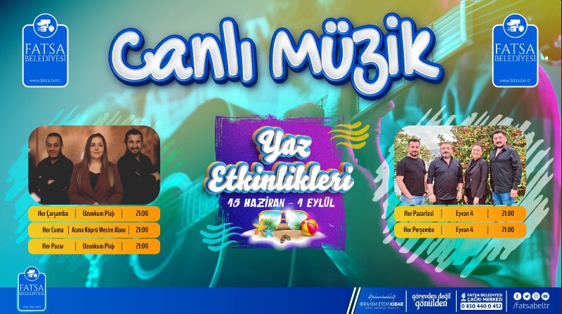 Yaz ayı boyunca Belediyemizin bir taftan esas işlerini canla başla sürdürürken bir taraftan da sosyal etkinlikler gerçekleştireceklerini belirten Fatsa Belediye Başkanı İbrahim Etem Kibar, “Geçen seneye nazaran bu sene çok daha güzel ve çok daha kapsamlı bir yaz etkinliği takvimi hazırladık. Haziran, Temmuz ve Ağustos ayı boyunca sürpriz konserlerimiz, açık hava yaz sinema etkinlerimiz, uçurtma şenliği, çocuklar için aksiyon dolu yarışmalar, birbirinden güzel etkinliklerimizle yaz boyunca dolu dolu programlar yapacağız.“ dedi.
