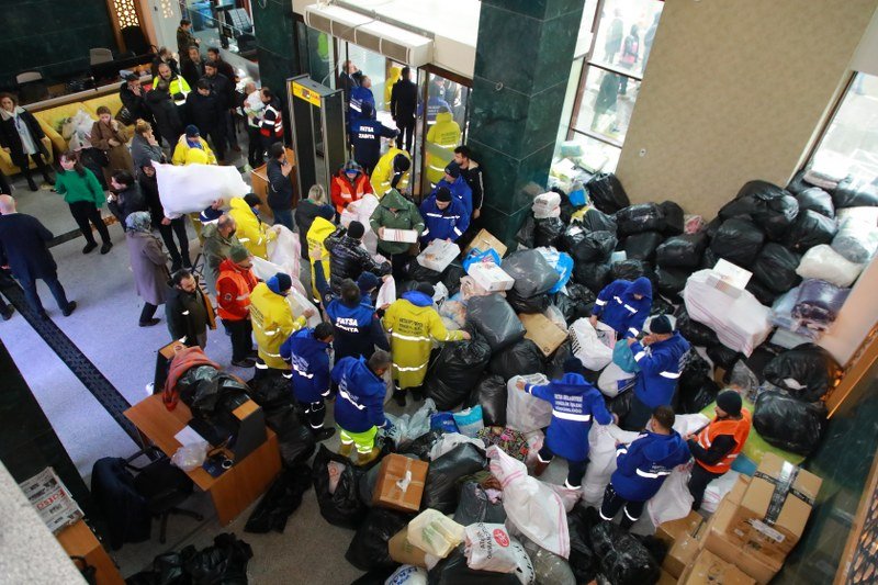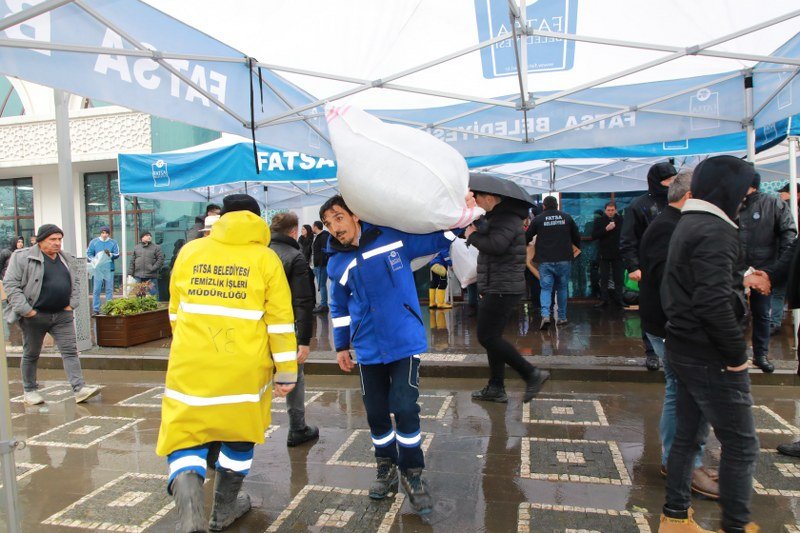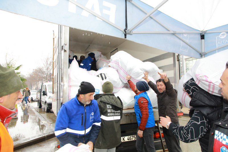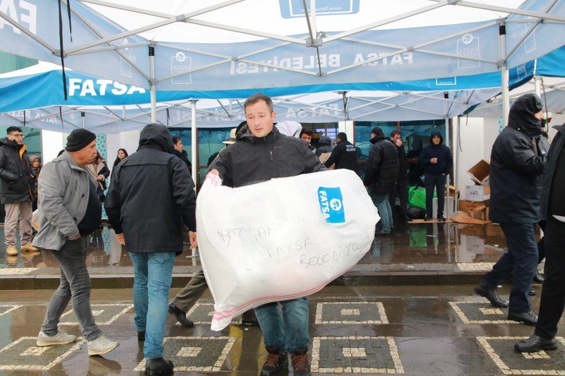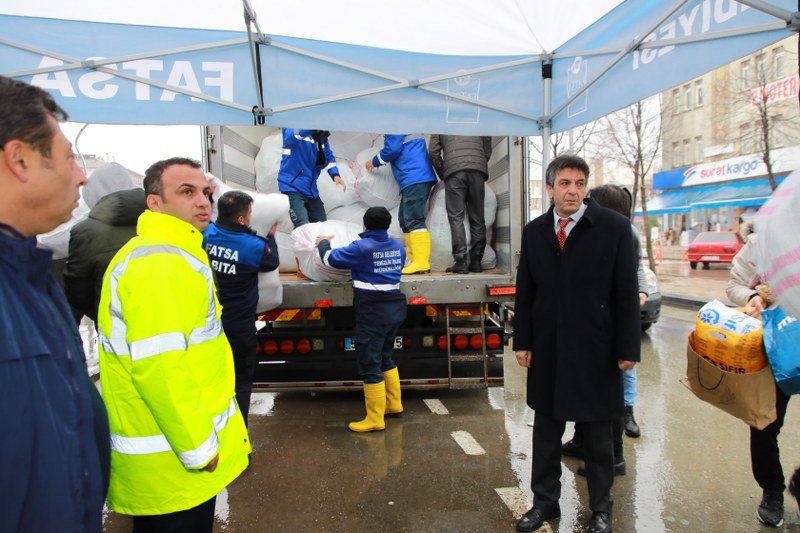 Fatsa Belediye Başkanı İbrahim Etem Kibar’ın sabah deprem bölgesine çocuk bezi, battaniye, mama, kıyafet, ayakkabı gibi yardım çağrısının ardından vatandaşlar akın akın belediyeye koşarak yardım getirdi. Bir taraftan vatandaş kuyruklar halinde yardımlarını teslim etmeye çalışırken diğer taraftan da belediye birim müdürleri içerisinde olmak üzere tüm belediye personeli yardım malzemelerini ayrıştırmak ve TIR’lara yükleme konusunda adeta seferber oldu.
