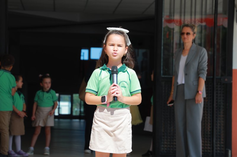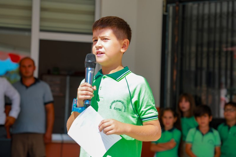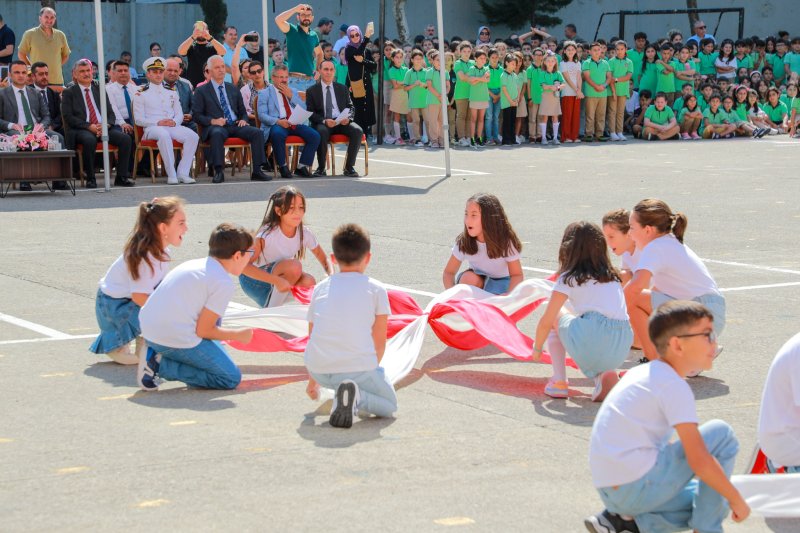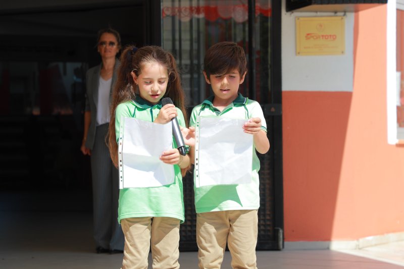 İlçe Milli Eğitim Müdürü Saygın Atinkaya'nın yaptığı konuşmanın ardından Ayşe Sare Ergün isimli öğrenci “İlköğretim Haftası”, Mert Deniz Aydın “Okul Sevgisi” Zeynep Asya Karaca “İlköğretim Haftası” adlı şiiri, 4-E sınıfı öğrencileri “Parla” adlı gösteriyi, 3-F sınıfı öğrencileri “Gelecek Biziz” adlı göstereyi sundular. Ardından 4. sınıf öğrencileri tarafından 1. sınıfa yeni başlayan öğrencilere bayrak devir teslimi yapıldı ve okula hoş geldiniz çiçeği sunuldu. Programın sonunda İlçe Kaymakamı Avni Kula, Belediye Başkanı İbrahim Etem Kibar ve İlçe Milli Eğitim Müdürü Saygın Atinkaya ilk ders zilini çalarak yeni eğitim öğretim yılının startını verdiler.