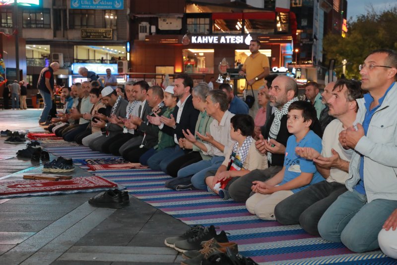 “Gazze İçin Kıyamdayız Seccadeni Al Gel” adıyla Cumhuriyet Meydanı’nda düzenlenen eyleme vatandaşlar büyük ilgi gösterdi. Hep birlikte akşam namazının kılınması ile başlayan “Gazze İçin Kıyamdayız Seccadeni Al Gel” eyleminde, din görevlisi Abdullah Öre ve 10 yaşındaki oğlu Yusuf Buğra Öre Fetih suresini okudular. Sivil Toplum Platformu üyesi İbrahim Atik ve Fatsa Belediye Başkanı İbrahim Etem Kibar, programda yaptıkları konuşmalarda katil İsrail’i kınadılar.