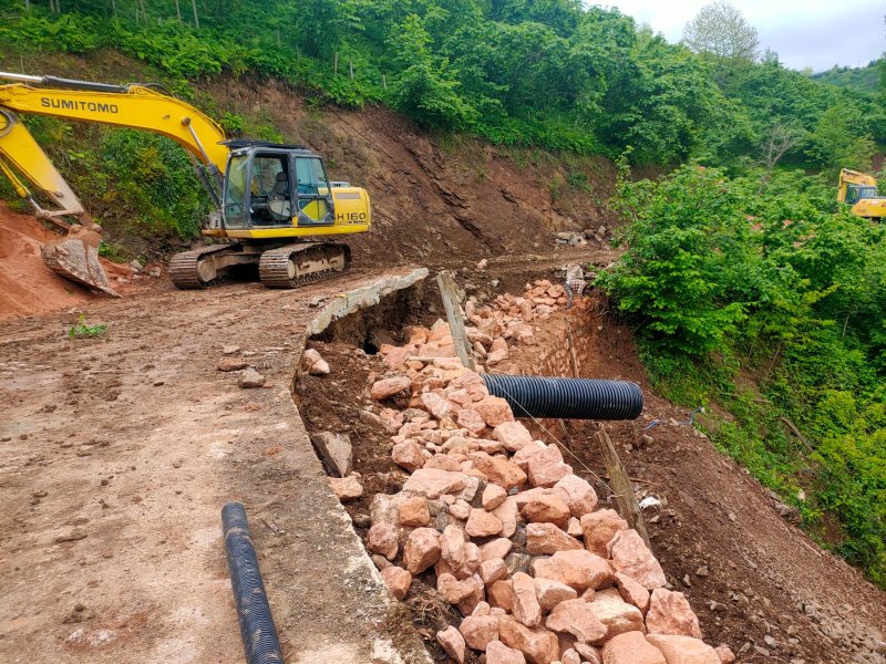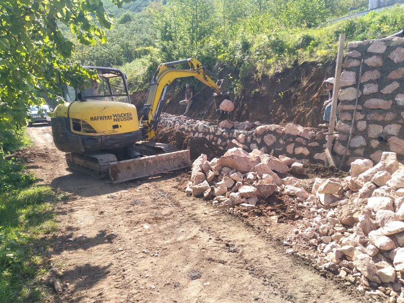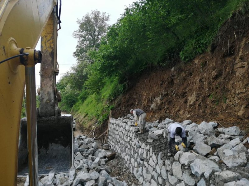 Fatsa kırsalında coğrafi konumu itibariyle heyelanlar nedeniyle ulaşımda sıkıntı yaşayan mahallelere Fatsa Belediyesi Kırsal Hizmetler Müdürlüğü ekipleri taş duvar yaparak yolları daha güvenli hale getiriyor.