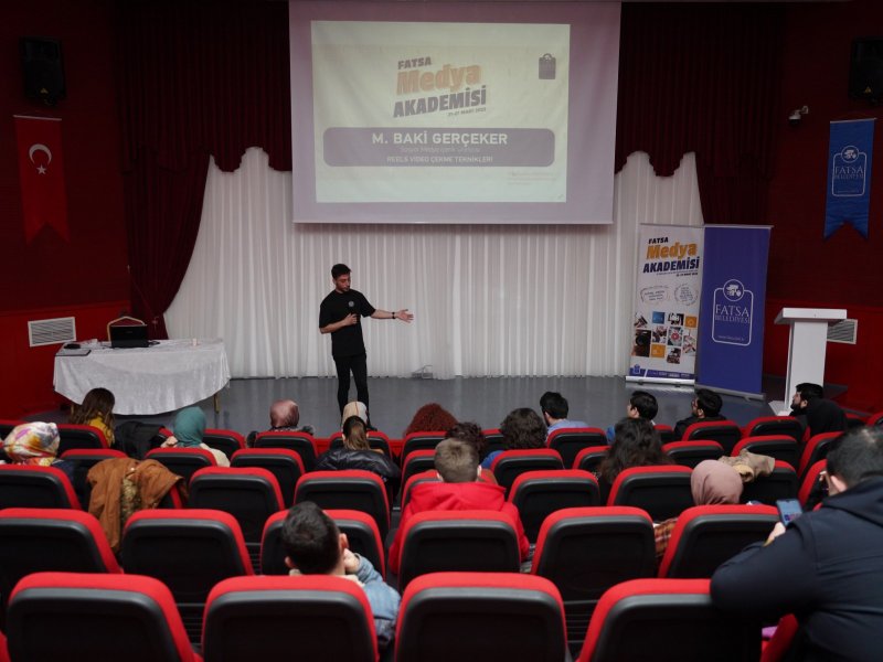 Medya alanından geleceğe yön verebilecek gençlerin yetiştirilmesi amacıyla organize edilen Fatsa Medya Akademisi’nin 3. Gününde Mehmet Baki Gerçeker Reels Video Çekme Teknikleri, Elif Kübra Genç, Sıfırdan Instagram Hesabı Kurgulamak ve Ersin Çelik’ de İnternet Haberciliği-Gazetecilik konularında eğitim verdi.