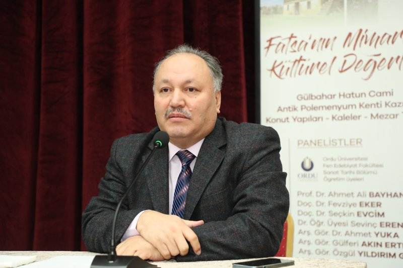 Ordu Üniversitesi Fen Edebiyat Fakültesi Sanat Tarihi Bölümü Öğretim Üyesi Prof.Dr. Ahmet Ali Bayhan ise yaptığı konuşmada, “Fatsa Karadeniz sahilinde önemli şirin bir yerleşim yeri fakat tarihi özellikleri bakımından bugüne kadar biraz bakir kalmış. Çok fazla üzerinde çalışmalar yapılmamış. En yaygın olarak bilinen Bolaman’daki Haznedaroğlu Konağı ve Kalesi, onun dışındaki yapılarla ilgili günümüzde öncesinde Ayşe Fatma Erol'un Cıngırt Kalesi'nde başlatmış olduğu kazı çalışmaları var, yüzey araştırmaları var ve bununla birlikte de günümüzdeki çalışmalara gelmiş bulunuyoruz. Bizim de bundan sonraki süreçte belediyenin öncülüğünde Fatsa'nın ve bağlı köylerindeki önemli yerleşim yerlerinde bulunan bütün tarihi değerlerini ortaya çıkarmaya yönelik bir çalışma başlattık. Bu kapsamda bir bilgilendirme yapmak amacıyla bugünkü paneli gerçekleştirdik. Önümüzdeki yıl 2024 yılı sonu itibariyle bu derlediğimiz bilgilerin, belgelerin tamamının oluşacağı bir kitap halinde bunlar halkımıza da sunulmuş olacak ve bilim alemine de takdim edilmiş olacak.” diye konuştu.