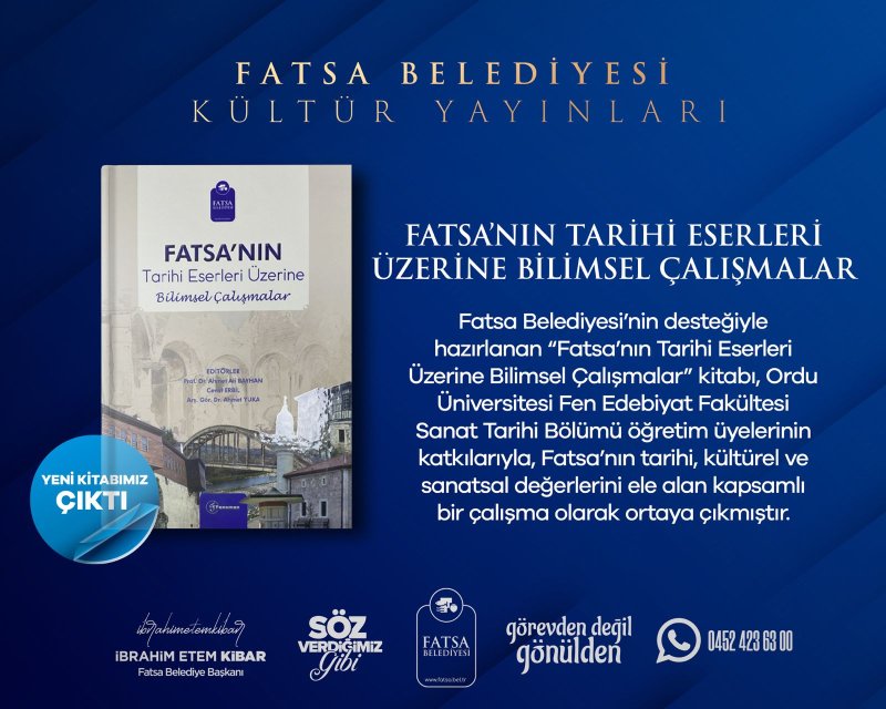 Fatsa Belediyesi, kültürel mirasın korunması ve gelecek nesillere aktarılması amacıyla yürüttüğü çalışmalara bir yenisini ekledi. Ordu Üniversitesi Fen Edebiyat Fakültesi Sanat Tarihi Bölümü öğretim üyelerinin katkılarıyla hazırlanan “Fatsa’nın Tarihi Eserleri Üzerine Bilimsel Çalışmalar” adlı kitap, Fatsa halkıyla buluştu.