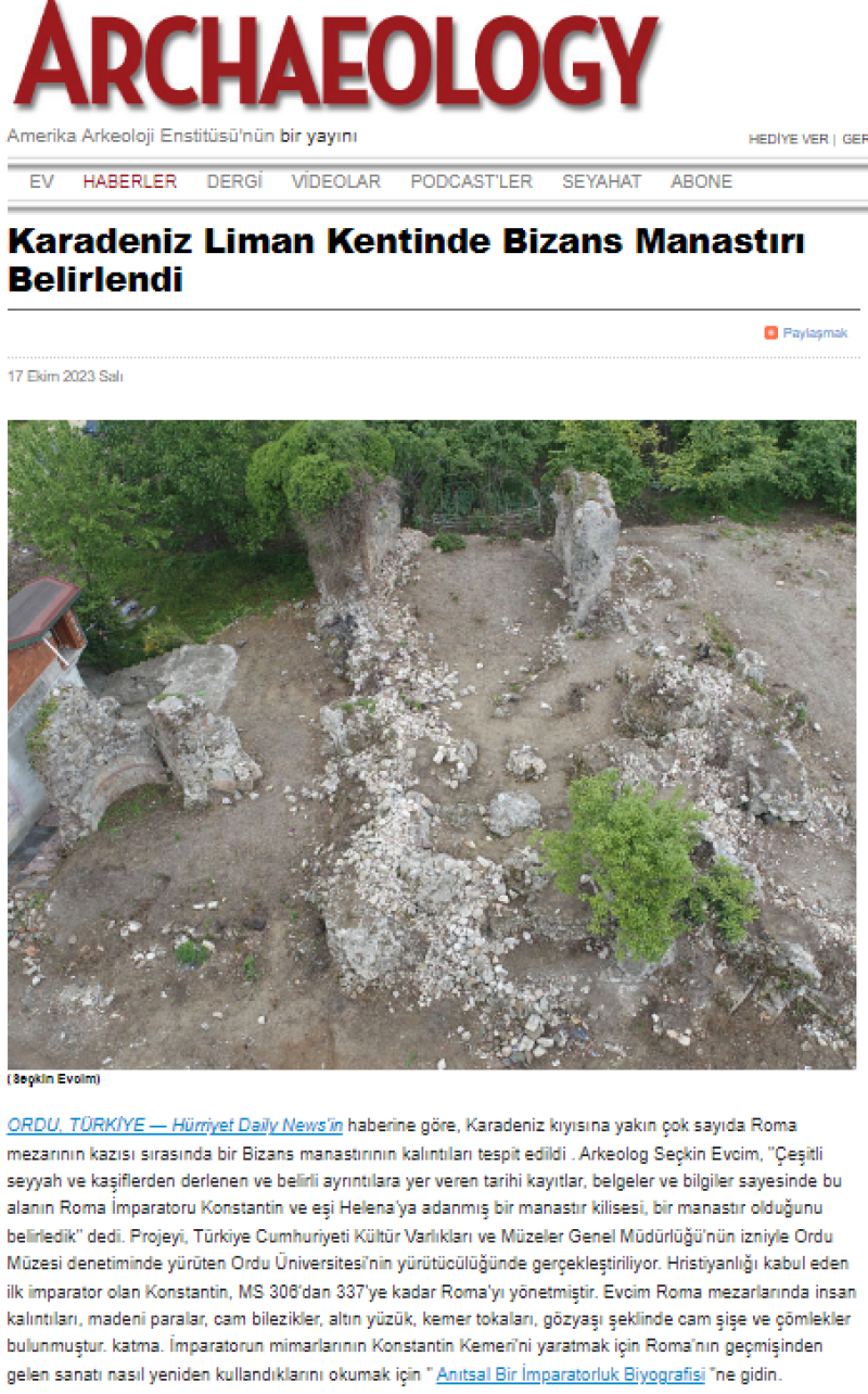 75 yıldır Amerikan Arkeoloji Enstitüsü tarafından yayınlanan dünyanın en popüler arkeoloji dergisi olan “Archaeology” web sitesinin dünya çapındaki güncel arkeoloji haberleri içerisinde Fatsa-Polemonion Kazısı’na yer verdi.