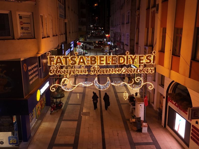 Fatsa Belediyesi, Ramazan-ı Şerif’in manevi atmosferini şehrin dört bir yanında daha güçlü hissettirmek amacıyla cadde ve meydanlarda ışıklandırma çalışması gerçekleştirdi.