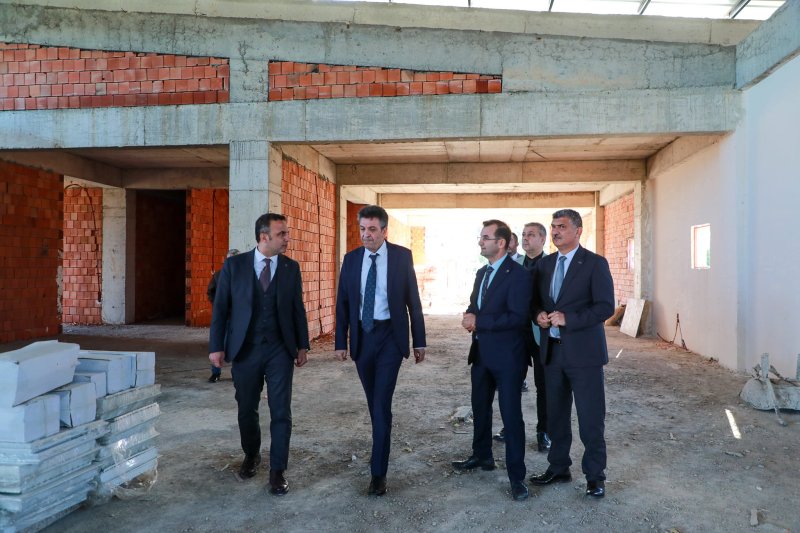 Evkaf mahallesindeki Yarı Olimpik Yüzme Havuzu, Kapalı Tenis Kortları, Okçuluk Kamp Alanı ve 500 seyirci kapasiteli sentetik çim saha alanlarında incelemelerde bulunan Başkan Kibar, Kaymakam Kula, müdürler Atinkaya ve Bekyürek proje alanlarındaki son durumlarla ilgili bilgi aldılar.