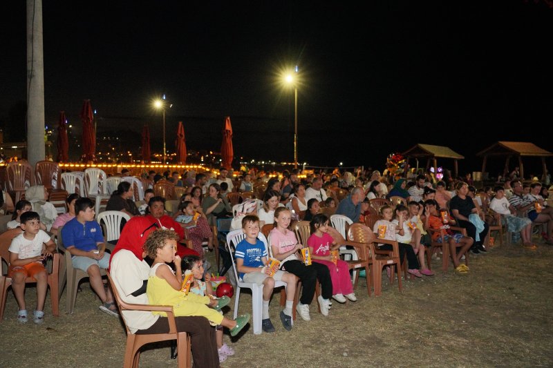 Sıcak bir yaz gününün yorgunluğunu serin bir akşamda atmak isteyen vatandaşlar, sahil kenarında yıldızlar altında sinema keyfi yaşadı.