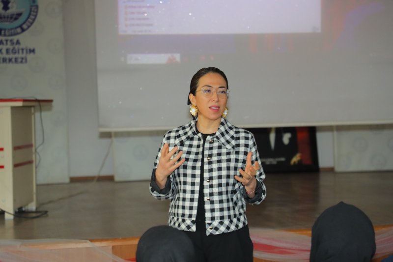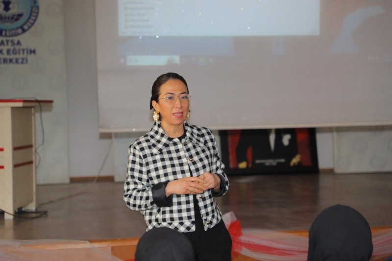 Fatsa Halk Eğitim Merkezinde kursiyer kadınlara 8 Mart Dünya Kadınlar Günü nedeniyle kaynakta atıkların azaltılması konulu eğitim veren Fatsa Belediyesi İklim Değişikliği ve Sıfır Atık Müdürü Derya Özcan Ateşli, “Kadının gücü, kadının varlığı, kadının bilgeliği ve özellikle de çevreci ve nesil oluşması anlamında annelerin rolü çok olduğu için bu anlamda kadınlara ulaşmayı istedik.” dedi.