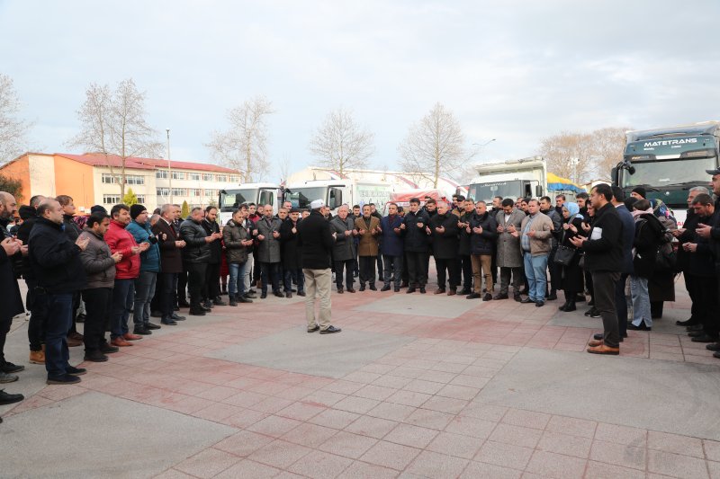 15 Temmuz Demokrasi ve Özgürlük Meydanı’nda yapılan dua ve uğurlama töreninde, Fatsa Kaymakamı Avni Kula, Fatsa Belediye Başkanı İbrahim Etem Kibar, Belediye Meclis Üyeleri, Daire Müdürleri, görevli personellerin aileleri katıldı. Fatsa Müftülüğü Şube Müdürü Mehmet Sandıkçı’nın yaptığı dua ile 35’inci yardım aracı yakacak, yiyecek ve barınma malzemelerinin yanı sıra 1 konteyner ev 3 iş makinesi ve görevli personeller deprem bölgesine gönderildi.