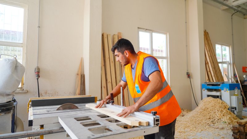 Gençlerin istihdam kapısı olan Kent Mobilyaları Üretim Atölyesi’nde üretilen ürünlerin satılarak belediye kazanç sağlayacak.