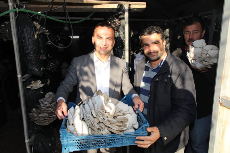 Ziraat Odası Başkanı Haydar Gürsu ile birlikte Sefaköy mahallesinde Kültür Mantarı yetiştiren Ümran Akça ve Kayaköy mahallesinde istiridye mantarı yetiştiren Yener Çetin’in mantar üretim tesislerine ziyarette bulunan Belediye Başkanı İbrahim Etem Kibar, “Üreticilerimize bol ve bereketli hasatlar ve hayırlı kazançlar diliyorum.” dedi.