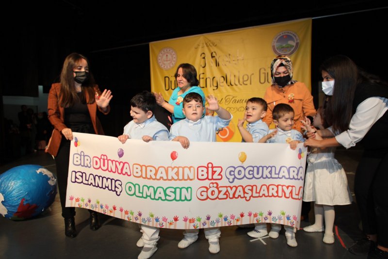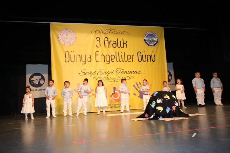 Yoğun katılımın gerçekleştiği program, saygı duruşu ve İstiklal Marşının okunmasıyla başladı. Günün anlam ve önemini belirten konuşmasını yapan İlçe Milli Eğitim Müdürü Saygın Atinkaya, “Engellilik, sosyal yönleriyle her birinizi yakından ilgilendiren olumsuz etkilerini en aza indirgemek için herkesin katkısına duyarlılığına ve ortak çabasına ihtiyaç hissedilen toplumsal bir husustur. İlçemizde eğitimin her kademesinde engelli çocuklarımızın eğitim görebileceği okul türü mevcuttur Anaokulundan ilkokul ortaokul lise ve Meslek Okulu’ndan oluşan eğitim kurumlarımızda hiçbir çocuğumuzun Eğitim’den mahrum kalmaması adına çalışmalarımızı devam ettiriyoruz. İlçemizde 7 özel eğitim okulumuzda 907 öğrenci eğitim görürken 971 öğrencimiz Lise Açık Öğretim sistemi içerisinde eğitimlere devam etmektedir. Bu öğrencilerimiz diğer ilçelerden olmak üzere taşımalı eğitim sistemi ile okullarına taşımaktadırlar. Her çocuğun eğitim hakkından mahrum bırakılmayacağı bilinci ile okula gelmeyen engelli çocuklarımızın eğitimleri ne öğretmen görevlendirerek evlerinde eğitim alması sağlanmaktadır.” dedi