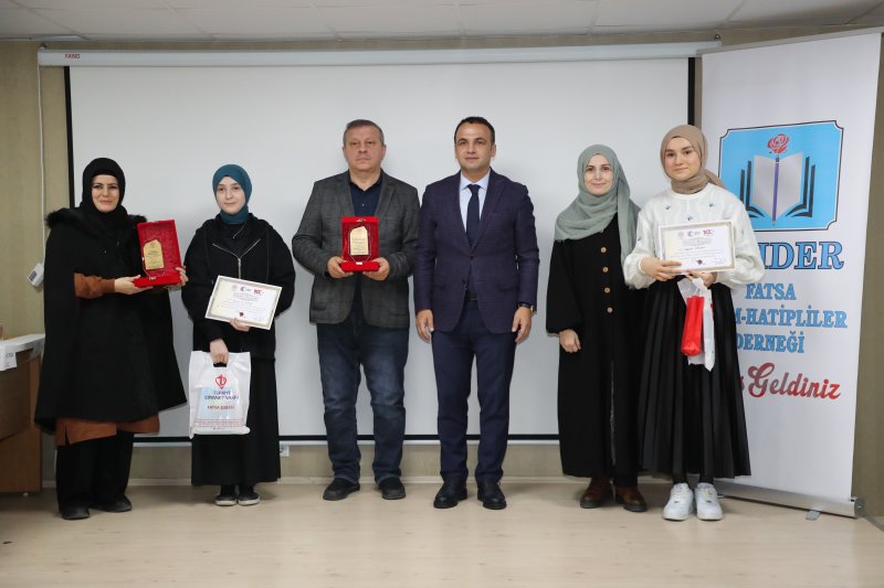 Yarışmada dereceye giren öğrencilere ödülleri Fatsa Belediye Başkanı İbrahim Etem Kibar, İl Milli Eğitim Müdürü Mehmet Fatih Vargeloğlu, İlçe Milli Eğitim Müdürü Saygın Atinkaya, İl Milli Eğitim Şube Müdürü Ahmet Erkuvum, İlçe Milli Eğitim Şube Müdürleri Şükrü Yüksel ve Kazım Başoda tarafından takdim edildi.
