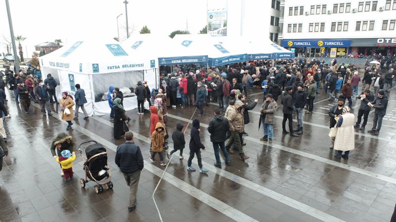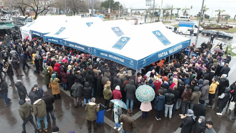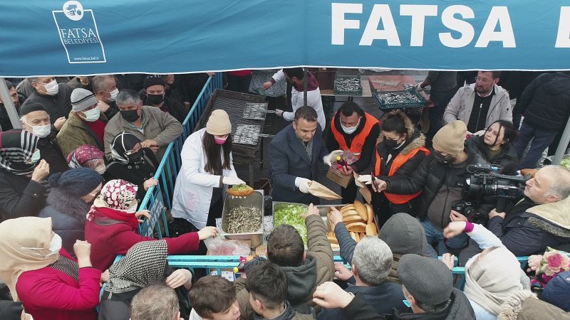 Fatsa Cumhuriyet Meydanında yapılan Hamsi Şenliği için Belediye Başkanı İbrahim Etem Kibar sosyal medya hesabından vatandaşları hamsi yemeye davet etti. “Kar Yağdı Hamsi Kar Suyunu Yedi. Bu havada hamsi ekmek iyi gider” diyerek vatandaşları davet eden Başkan Kibar hamsili ekmekleri bizzat kendi elleriyle vatandaşlara ikram etti. Hamsili ekmeğin yanında vatandaşlara şalgam suyu ve helva ikramı da yapıldı.