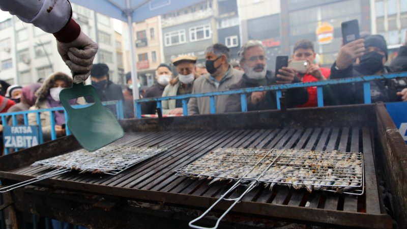 Fatsa Belediyesi tarafından düzenlenen hamsi şenliğinde 2 ton hamsi bir vatandaşların yoğun ilgisi nedeniyle bir saatte bitti.