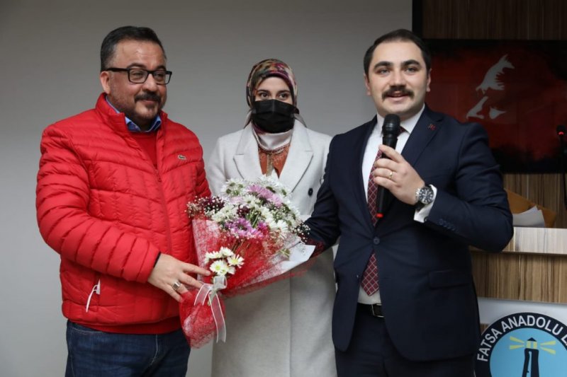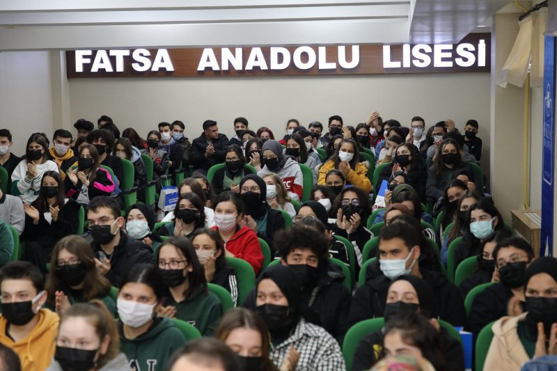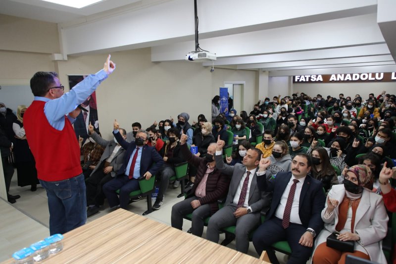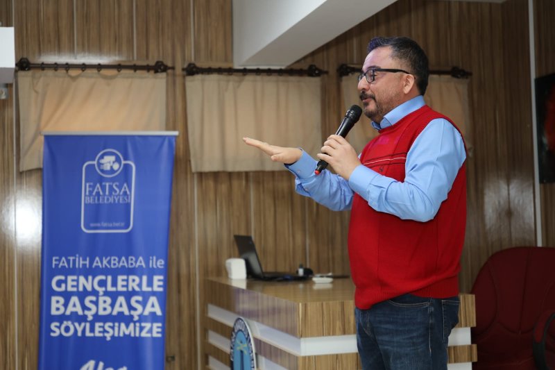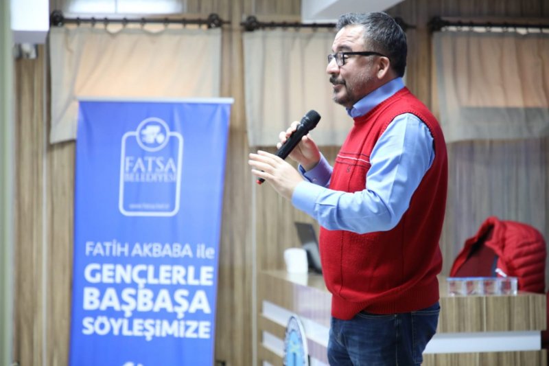 Fatsa Anadolu Lisesi Atatürk Konferans Salonunda “Gençlerle Başbaşa” isimli söyleşiye katılan İletişim Uzmanı Eğitimci Fatih Akbaba gençlere süreli okuyarak ve araştırarak eğitimlerine devam etmelerini önerdi. Programa Fatsa Belediye Başkanı İbrahim Etem Kibar, Terme Cumhuriyet Savcısı Mert Fatih Doğan, Fatsa Ziraat Odası Başkanı Haydar Gürsu ve öğrenciler katıldı.