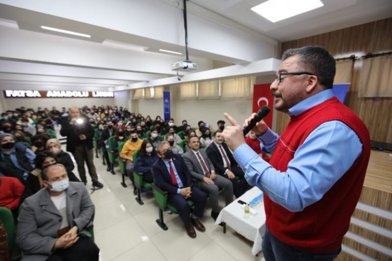 Kültür ve sanat faaliyetleri kapsamında düzenlenen “Aile Okulu” Projesinde İletişim Uzmanı Eğitimci Fatih Akbaba’nın sunmuş olduğu “Gençlerle Baş başa” konulu konferansın açılış konuşmasını yapan Fatsa Belediye Başkanı İbrahim Etem Kibar, “Gençlerimizin eğitim, kültür ve sosyal alanlardaki gelişimi bizler için özel bir önem ve öncelik taşımaktadır. Gençlerin kültürel birikimlerinizi artırma, düşünce ufuklarınızı geliştirmek için eğitim, kültür ve sosyal çalışmalara ağırlık veriyoruz. Ortak amacımız geleceğe ışık tutan ışıl ışıl gençler yetiştirmek. Gençlerle birlikte olmak her zamanki gibi harika. Biz gençlerin hep yanınızdayız.” dedi.