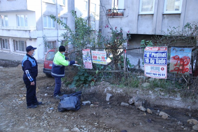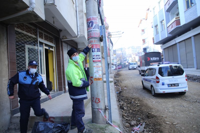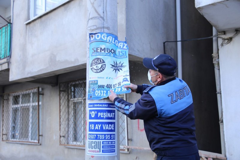 Fatsa Belediyesi Zabıta Müdürlüğü ekipleri ilçe genelinde izinsiz olarak asılan ve görüntü kirliliğine neden olan afiş ve pankartlara müdahale etti.