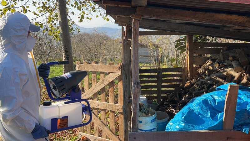 Kabakdağı Mahallesi Muhtarı Meryem Keskin ise mahallelerinin 500 haneden oluştuğunu ifade ederek, “Bütün evler ilaçlanana kadar çalışmamız devam edecek. Sadece kendi ilaçlamasını kendisi yapanları ayırıyoruz. Daha sonra da dışarda kalan yıkılmış evleri, odunlukları sağ olsun belediyenin ve ilçe tarımın bize verdiği ULV cihazıyla ilaçlıyoruz. Evlerin içlerini ve çatılarını, daha sonra da yıkık evleri ilaçlayacağız ve köyün tamamını ilaçlamayı düşünüyoruz. Biz zaten daha önce de ilaçlama çalışması yapmıştık şimdi yine devam ediyoruz. Amacımız kışlakta böcekleri yok etmek. İnşallah muvaffak oluruz çünkü zararımız çok büyük. Sadece fındık değil sebzelerimiz, bütün meyvelerimiz, her şeyimizi böcek yiyor. İnşallah muvaffak olacağız.” şeklinde konuştu.