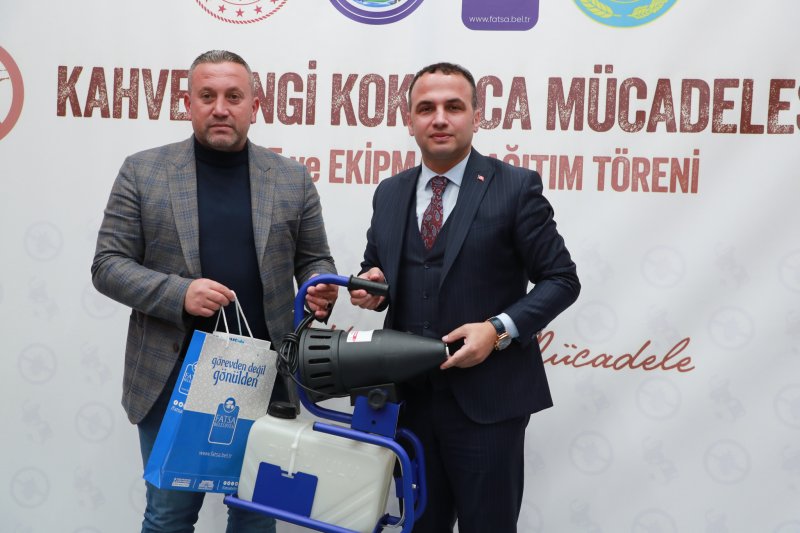 Kokarca ile mücadele kapsamında Fatsa Belediyesi katkıları ile Fatsa’nın tüm mahalle muhtarlarına son derece ince püskürtme tekniği sayesinde en az etken madde kullanarak hızlı ve kalıcı bir etki sağlayan, ULV (Ultra Low Volume) cihazı dağıtıldı.