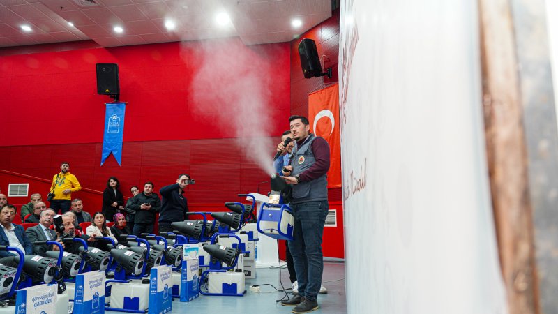 Muhtarlıklara verilen ULV cihazı hakkında bilgi veren Fatsa Ziraat Odası Başkanı Haydar Gürsu, “Bu vermiş olduğumuz cihaz, kesinlikle bu çalışmayı yapacak olan, köydeki mücadele edecek olan kişinin işini kolaylaştıran, elektrikle çalışan bir ULV cihazıdır. ULV cihazı, yani çok mini mini mikronlara bölerek ilacı her tarafa, havada asılı kalmasını sağlayan, ilacın etkisinin havada 2 saat kadar asılı kalmasını sağlayan bir makinedir. Bu makine, genelde ilaçlama sistemi kapalı alanlarda, evlerde, ahırlarda, çatıların araları, özellikle baca deliklerinde kullanılabilecek ve kesin netice alabileceğimiz bir makine olduğu için, çiftçilerimizin de işini kolaylaştıracak, az zamanda çok iş yaptırabilecek bir makine diye düşünüldüğü için böyle bir program aldık. Şu anda 120 tane makinemiz var. Her mahalleye mutlaka birer tane veriyoruz. Bunun ötesinde de bazı büyük mahallelerimize ikişer tane, üçer tane olabilecek mahallelerimizde birkaç tane söz konusudur.” diye konuştu.