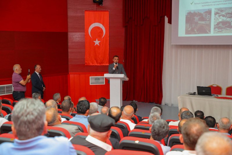 Belediye Kültür ve Sanat Merkezi’nde gerçekleşen toplantıya Belediye Başkanı İbrahim Etem Kibar, Ziraat Odası Başkanı Haydar Gürsu, İlçe Tarım Müdürü Vedat Aydoğan ve muhtarlar katıldı.