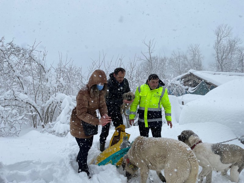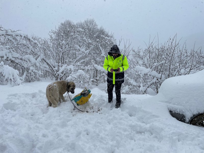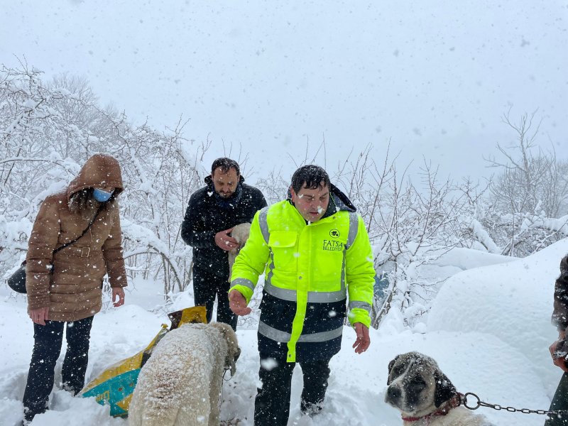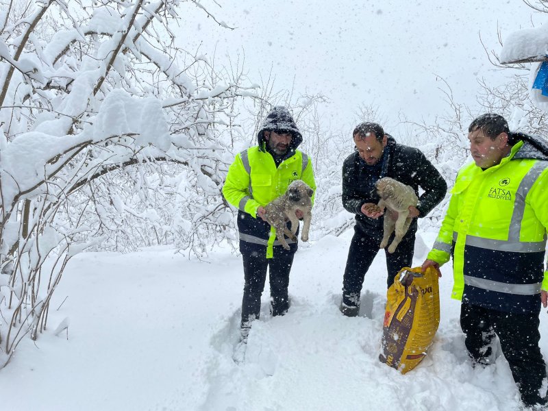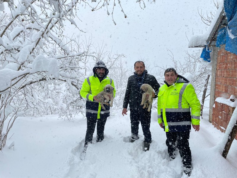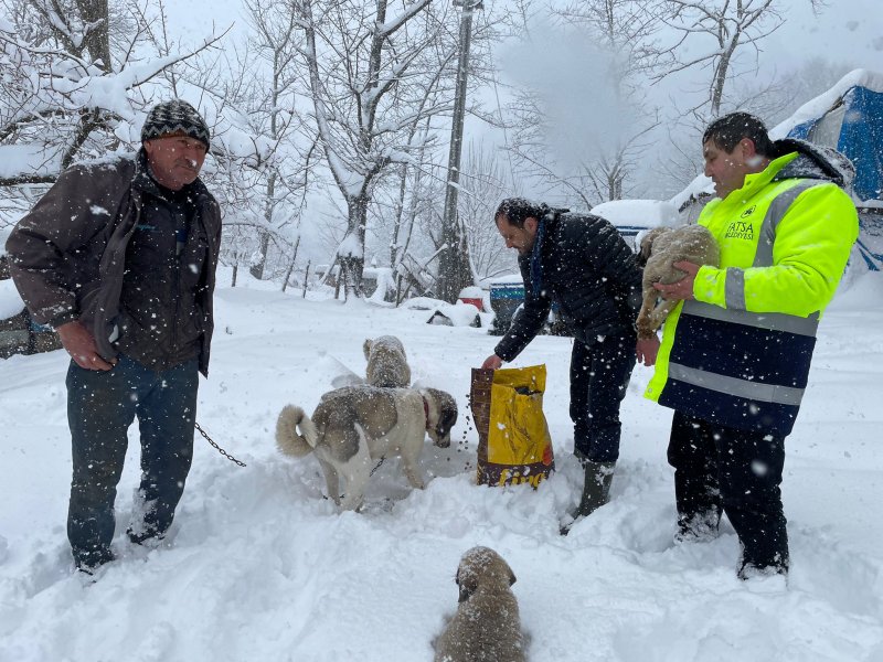 Fatsa Belediyesi kar yağışı ile birlikte beyaza bürünen kentte yiyecek bulmakta zorlanan sokak hayvanlarını unutmadı.