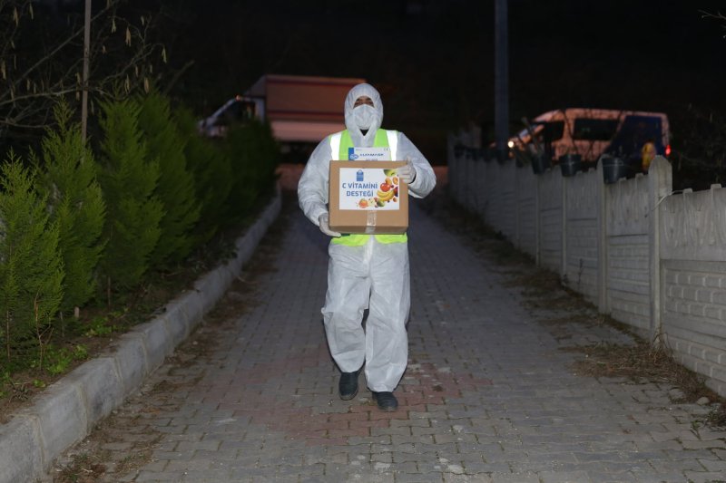 Karantinadaki 230 haneye C vitamini gıda destek paketi kapı kapı dağıtıldı.