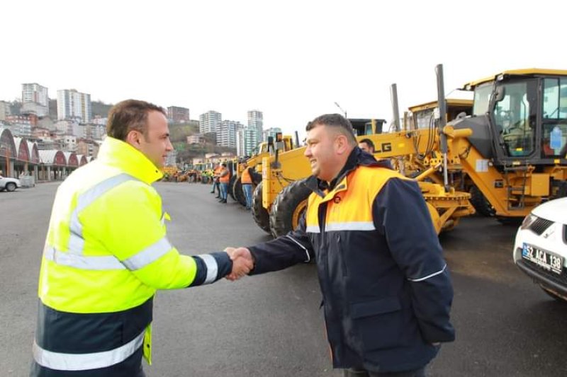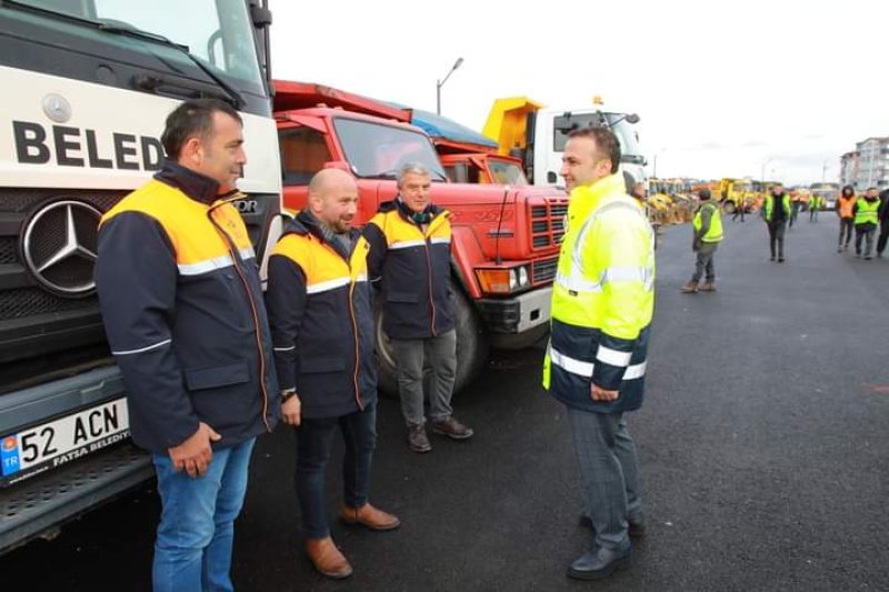 Fatsa Belediye Başkanı İbrahim Etem Kibar, karla mücadele ekibi ile bir araya geldi.