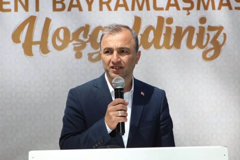 Kent bayramlaşmasının açılış konuşmasını yapan Belediye Başkanı İbrahim Etem Kibar, iki yıl aradan sonra tekrar güzel bir bayram kutlamasında bir araya geldiklerini belirterek, “Ramazan ayı boyunca Ramazanın maneviyatına uygun birçok programda gerek iftar programlarında gerek teravih programlarında gerekse de sahur programlarında bir araya geldik. Birbirimizi o kadar çok özlemişiz ki çok yoğun bir ramazan programı gerçekleşti. Programlarımızın çakışması nedeniyle davetli olduğumuz bir çok iftar programına, iftar sonrası çay sohbetine katılamadık. İnşallah önümüzdeki sene Ramazanda bu yıl ihmal ettiğimiz dostlarımızın sofraların ortak olarak o birlik beraberliğimizi en güzel seviyede gerçekleştiririz. İki yıldır dünyamızı ve ülkemizi etkisi altına alan bir pandemi döneminden geçtik. Hiçbirimiz böyle bir şeyi filmlerde görsek inanmazdık. Bayramlarda bir araya gelememek, bir bayramda bir büyüğün elini öpememenin hüznünü yaşadık ve bu durumun nedenli önemli bir zenginlik olduğunu gördük. İnşallah yaşamış olduğumuz bu süreçte çıkarmış olduğumuz güzel derslerle birlikte Ramazan bayramınızı en güzel şekilde birlik beraberlik içerisinde kardeşlik içerisinde yoğun bir şekilde mutlulukları paylaşırız. Kaymakam bey ile istişare ettiğimizde bu yılki Ramazan programınızı Atatürk Parkı Anfi tiyatroda gerçekleşmesini istedik. İnşallah bundan sonra da geleneksel hale gelerek, sivil toplum örgütü başkanlarımızın gerekse de siyasi parti temsilcilerimizin de bayram programında söz alabileceği, selamlarımı ilete bileceği güzel bir organizasyon olsun istedik. Bu yüzden teşekkür etmek istiyorum. Tekrar tüm İslam aleminin Ramazan Bayramını en içten dileklerimle kutluyor güzel bir bayram temenni ediyorum.” dedi.