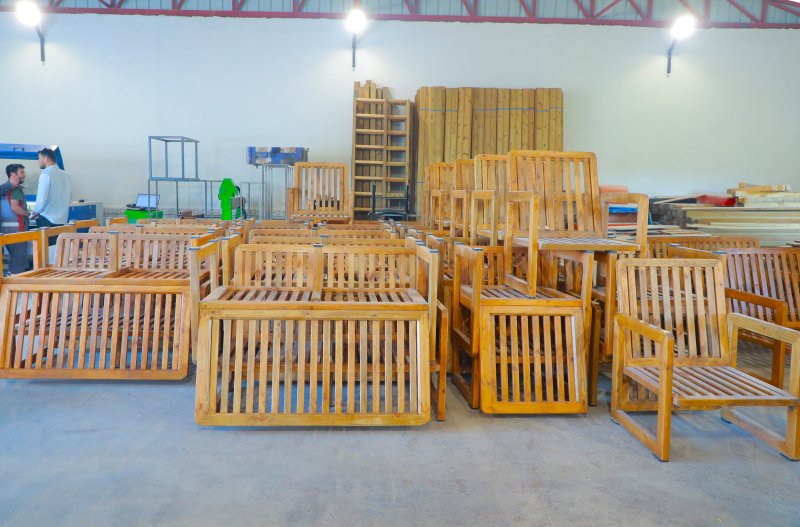 Kent Mobilyaları Üretim Atölyesinde 55 kalem metal ve ahşap işleme makinesi ile sıfırdan açık alan oturma grubu, piknik masaları, çatılı piknik masaları, kamelya, çiçeklik ve salıncak üretimleri yapılıyor.