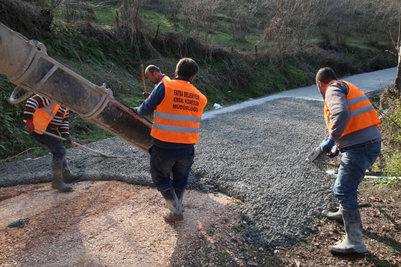 Konforlu ve güvenli ulaşım için kırsal mahalle ve grup yollarda beton yol çalışmalarını sürdüren Fatsa Belediyesi, hem şehrin ulaşım ağını genişletiyor hem de ulaşım kalitesini arttırıyor.
