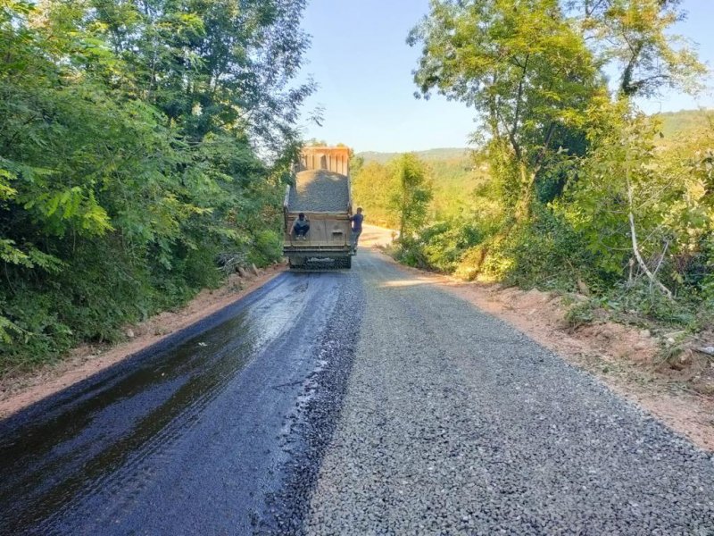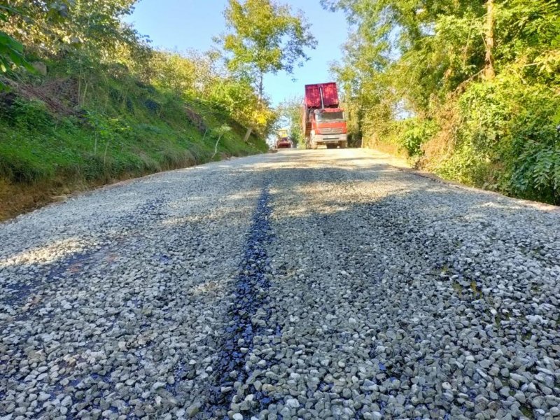 Fatsa Belediyesi Kırsal Hizmetler Müdürlüğü ekipleri kırsal mahallelerde emülsiyonlu sati kaplama asfalt çalışmalarını sürdürüyor.