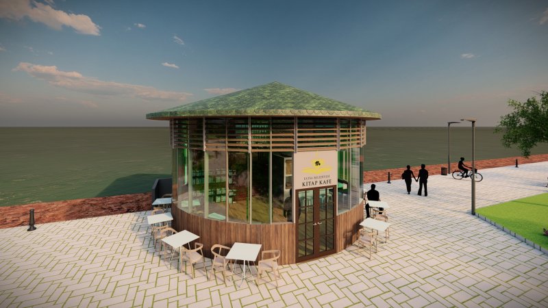 Sahilde inşaat çalışmaları devam eden Kitap Kafe Projesi kitapseverlere ve sosyal yaşam seven gençlere uzun yıllar hizmet verecek. 165 m² yapı alanına sahip olan Kitap Kafe Projesi 1 adet kafe ve kitap okuma salonu, 1 adet mutfak, 1 adet ortak lavabo, 1 adet bay-bayan tuvalet alanından oluşuyor.