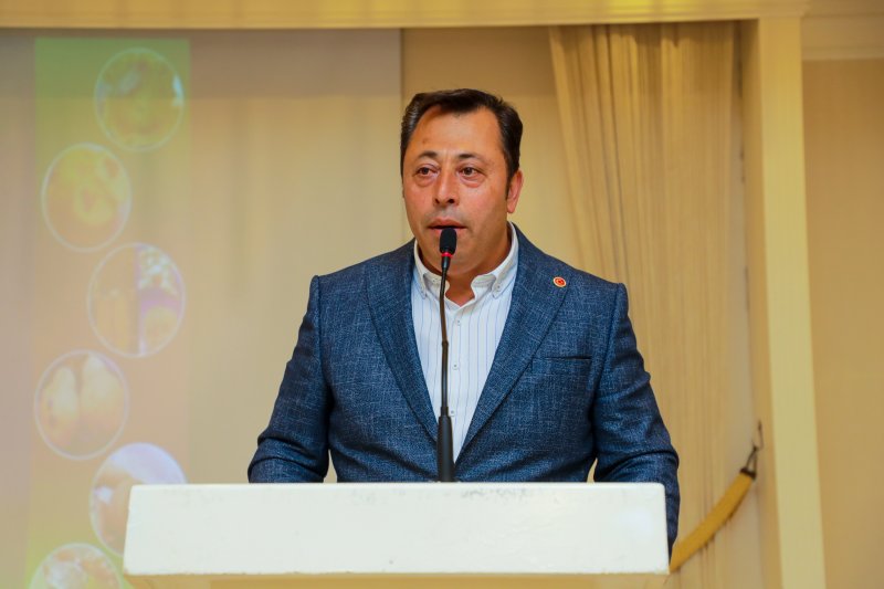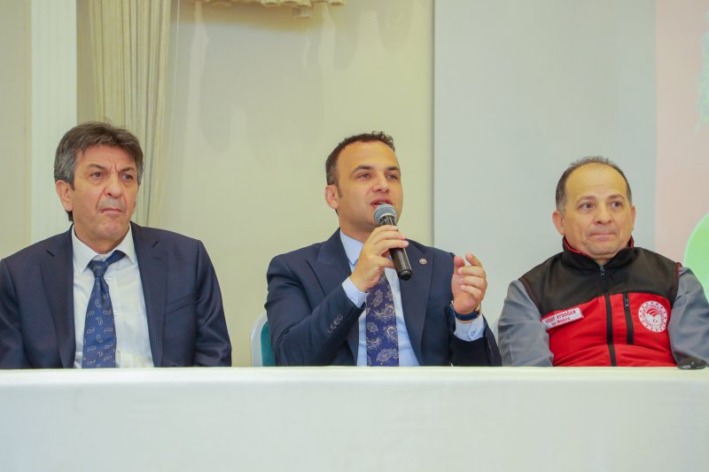 Muhtarlar Derneği Başkanı Abdullah Hafızoğlu’nun selamlama konuşmasından sonra kürsüye gelen Belediye Başkanı İbrahim Etem Kibar şuanda en önemli gündemlerinin Kahverengi Kokarca ile mücadele olacağını daha önce de söylediğini belirterek, “Kahverengi Kokarca’nın geçen yıl ki zararlısını herkes gördü. Kışa girmeden önce de yapılan ilaçlamaların meyvesini şu an biz sahada çok net bi şekilde görebiliyoruz. Özellikle kışlık dönemde evlerin işte yerleşim yerlerinin, Kokarcanın kışı geçireceği yerlerin ilaçlanması gerekiyordu. Bir çok muhtarımız buna öncülük etti, Ziraat Odamızda İlçe Tarım Müdürlüğümüz bu konuda önemli çalışmalar yaptı. Gerek vatandaşlarımız, gerekse kitlesel ilaçlama noktasında muhtarlarımız buna öncülük etti ve kışa girmeden önce çok başarılı bir süreç geçirmiştik. Şimdi aynı dönem bu Mayıs ayı ilaçlaması çok önemli. Burada biraz kitlesel bir ilaçlanma yapılması lazım yani sadece bir kişinin 2 kişinin ilaçlama yapmasıyla çözülebilecek bir durum değil. Özellikle geçen yıl vatandaşlarımız gerek ürün kaybı noktasında gerekse randıman kaybı noktasında hep beraber bu zararlılığın ne denli tehlikeli bir zararlı olduğunu hep beraber gördük. Eğer hep beraber bu hassasiyeti gösterip de vatandaşımızı da bu duyarlılığı oluşturamazsak ilerleyen günlerde çok daha sıkıntılı süreçler bizleri bekliyor.” dedi.