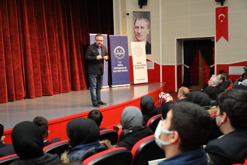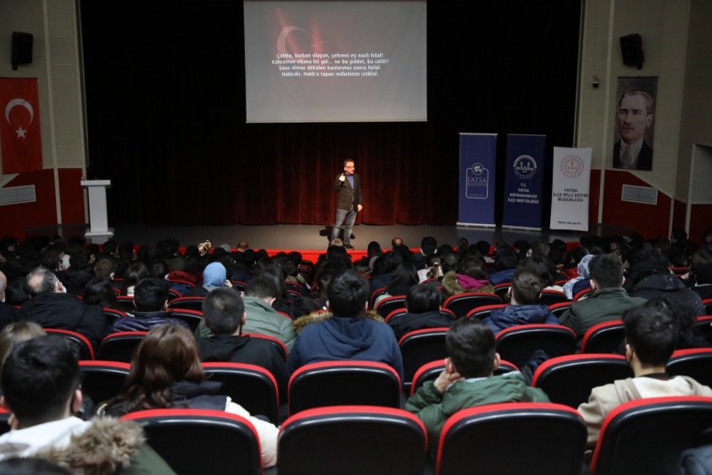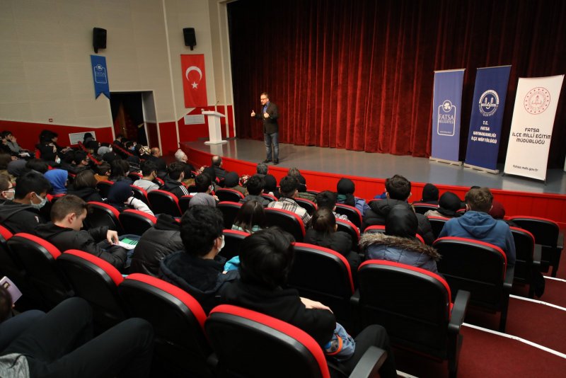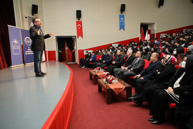 Fatsa Belediyesi Aile Okulu projesi kapsamında yazar ve iletişim uzmanı Fatih Akbaba, liseli gençlere belediye kültür ve sanat merkezinde “Çanakkale’den İstiklal Marşına Mehmet Akif Ersoy ile Anlaşabilmek” adlı konferans verdi.
