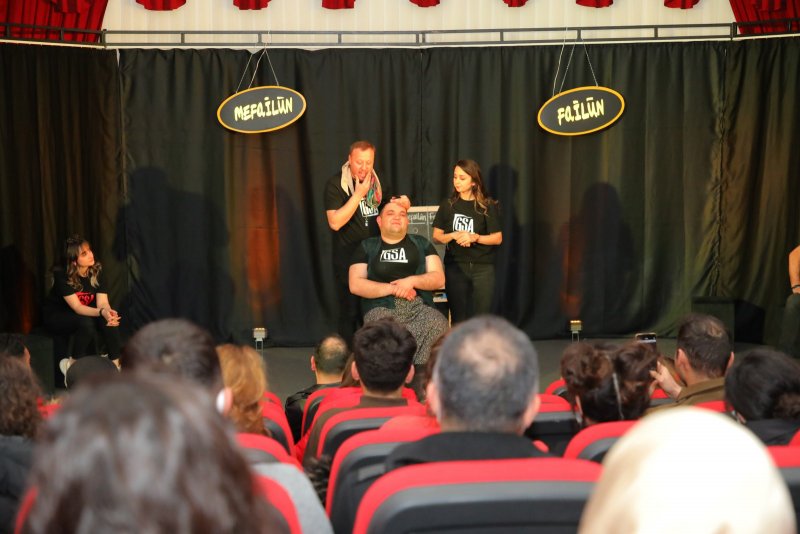 MESAİDEN SAHNEYE” ADLI DOĞAÇLAMA TİYATRO SPORU İZLEYENLERİ KAHKAHAYA BOĞDU