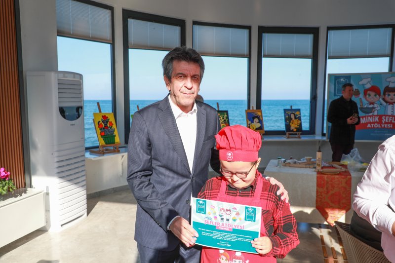 Minik şeflerin cupcake etkinliğinin ardından Kaymakam Avni Kula ve Belediye Başkanı İbrahim Etem Kibar öğrencilerin büyük emekle hazırladığı sergiyi inceledi.